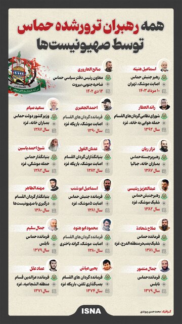 اسماعیل هنیه رئیس دفتر سیاسی حماس و یکی از محافظان وی بامداد امروز چهارشنبه (۱۰مرداد) در اثر اصابت قرار گرفتن محل اقامت آنان در تهران به شهادت رسیدند. در طول چند سال گذشته ترور و شهادت رهبران حماس در صدر برنامه های رژیم صهیونیستی بوده است.